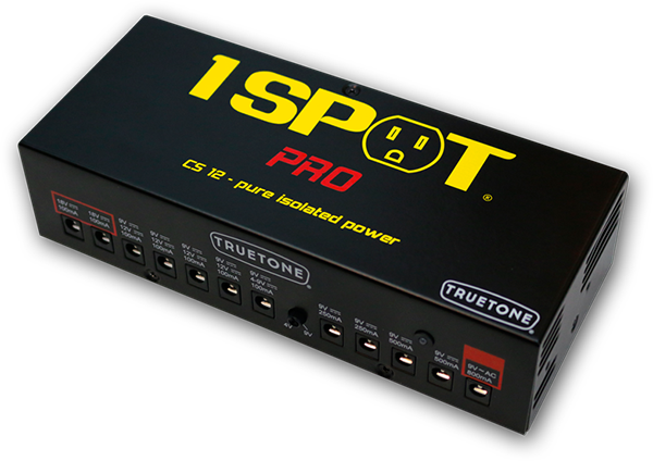 Conçu pour les musiciens qui ont besoin de plus que du 9 Volts comme le 1 Spot peut offrir, le 1 Spot Pro permet d'alimenter en 4V, 9V, 12V, 18V en DC ou 9V en AC et avec 12 sorties isolées en utilisant la technologie développée avec le 1 Spot.