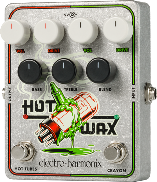 Awesome on guitarand bass, the Hot Wax fuses our Hot Tubes and Crayon pedals into one powerful dual-overdrive. Use each individually or stack them with the Crayon driving the Hot Tubes. Master EQ and Blend controls provide the tonal flexibility power players demand. The Hot Wax is the next evolution in inspired overdrives!
