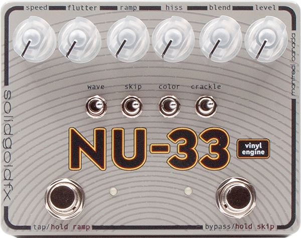 Speed, flutter, ramp, hiss, blend, level, switch wave, switch skip, switch color, switch crackle.