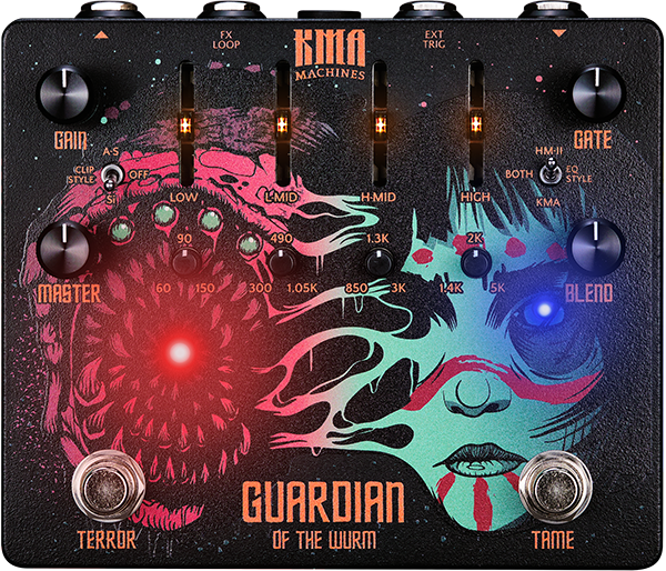 Fusionnant la puissante évolution de la distorsion WURM très appréciée de KMA avec un Noise Gate intuitif, polyvalent et ultra-rapide, GUARDIAN of the WURM est le monstre de métal parfait. Que ça soit pour du hard rock, du doom metal bourdonnant ou du death metal suédois incisif, la bête assure. Mais grâce à ses possibilités de réglages très larges, la pédale peut être apprivoisée pour fournir une définition impeccable à vos riffs, ce qui en fait la pédale de distorsion ultime pour le métal, le rock progressif, le shoegaze, l'indie et plus encore?