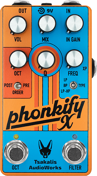 Expanding on the esteemed original Phonkify, the Phonkify X turns up the funk-o-meter with 3 selectable flavors of envelope filter and 3 types of octave voicings. It also features flexible momentary or latching operation for each effect, plus a dedicated toggle switch for selecting the order of the filter and octave.