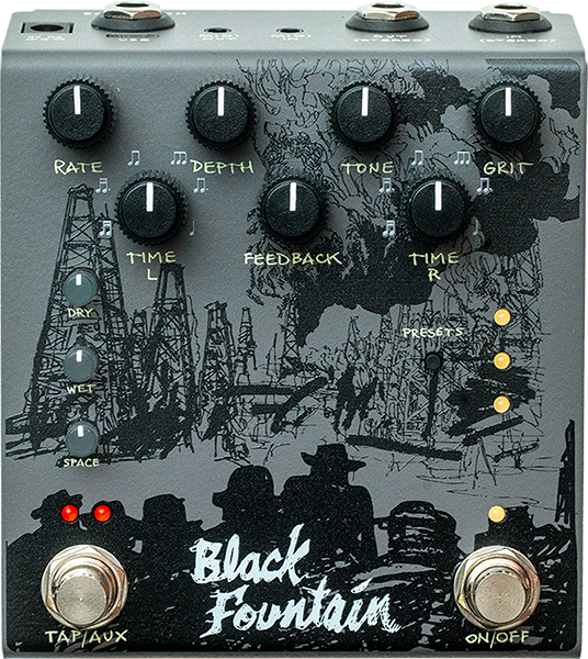 With a wider control set that's complete with added sonic options, a lower noise floor, dual delay lines that play together in a multitude of ways, presets, MIDI and expression control over everything, Black Fountain Stereo combines a sonic powerhouse of creative delay tones and into a pedalboard friendly package.