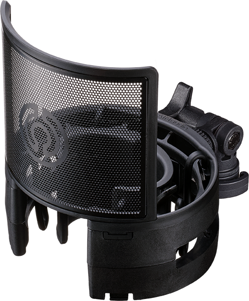 Le kit inclut également le SENTRY, un filtre anti-pop magnétique conçu pour contrôler les plosives les plus marquées. Sa structure en acier inoxydable traité, percée de micro-ouvertures hexagonales, optimise le flux d'air tout en préservant la clarté vocale. Courbé autour du micro, il suit naturellement les mouvements du chanteur et se fixe par aimants haute précision, sans risque d'interférence électronique. Pour les sessions sans filtre, Aim Audio propose l'anneau magnétique Resorber, qui neutralise les éventuelles résonances restantes.