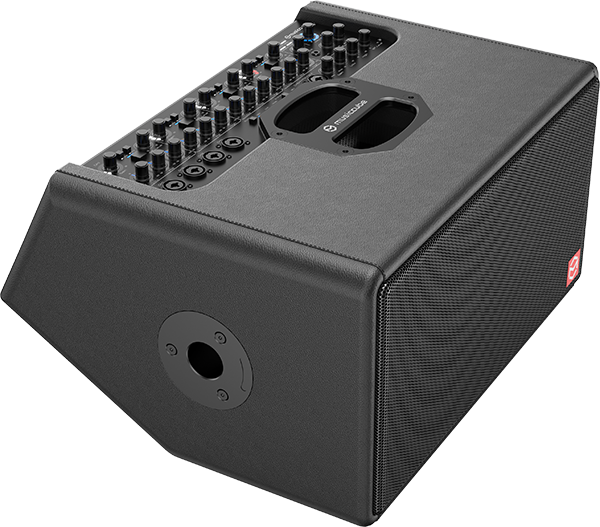 Elle propose également des préréglages système, une fonction de monitoring discret, un traitement sonore HD et une sortie crossover pour relier d'autres enceintes. Elle fonctionne avec deux batteries haute performance interchangeables, assurant une autonomie prolongée idéale pour les événements en extérieur.