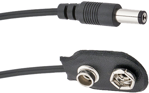 Adaptateur pour alimentation Pedal Power. Embout pour branchement pile 9 Volts. Longueur : 50 cm.